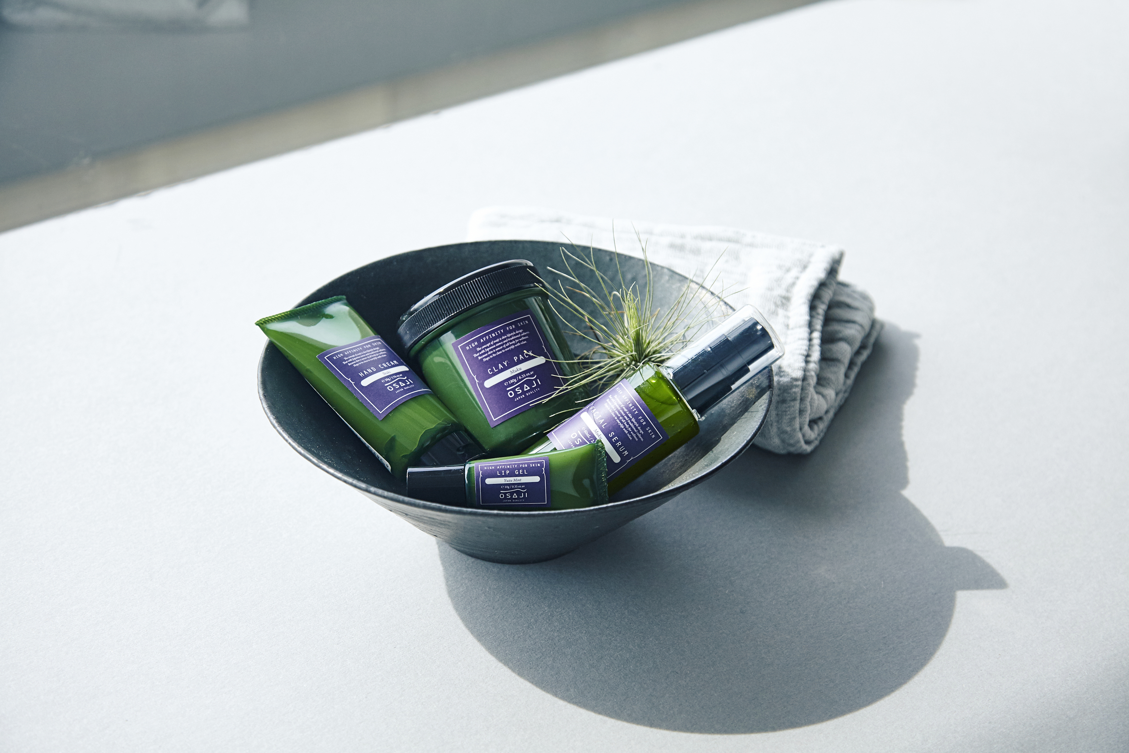 화장품 개발자(시게다 마사카즈)가 피부의 구조와 진지하게 마주해 탄생한 OSAJI의 각 아이템.