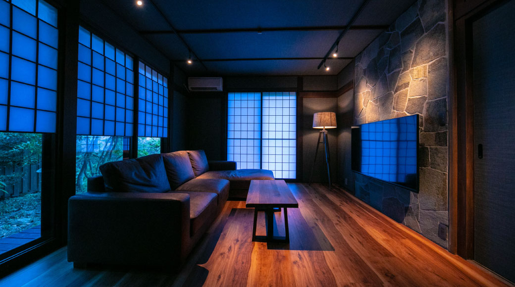 모든 객실 노천 실내탕이 완비된 별채는 개인적인 시간을 보내실 수 있습니다.