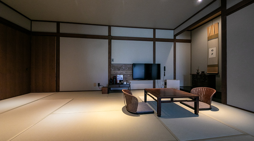 | 객실 타입 | 화양실 83평방미터 욕실・화장실 완비 원천 방류식 100% 노천탕 완비 / 카운터 설치 미니바 / 워크인클로젯 / 전자레인지 / LCD TV (50인치 이상) / 비데완비 화장실 / 금고 / 내선전화 / 냉난방 완비 / 냉장고안 무료 / Simmons 브랜드 침대 |