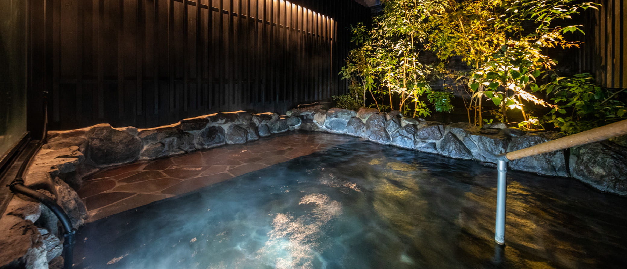 40平米の落ち着いた空間に、開放的な露天風呂と快適な内湯を完備。